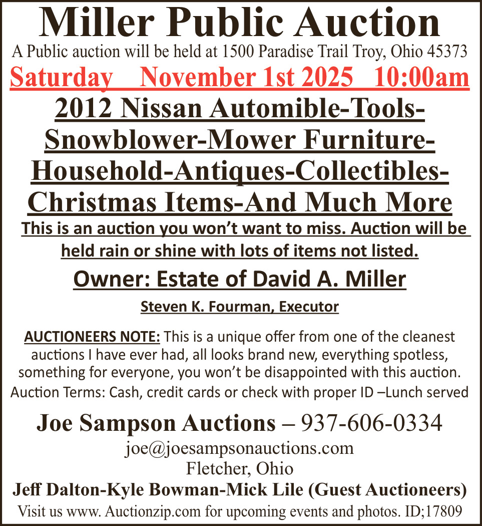 Oct 18, 2025. Miller Public Auction (November 1, 2025) Public Notice Ads from Miami Valley Today