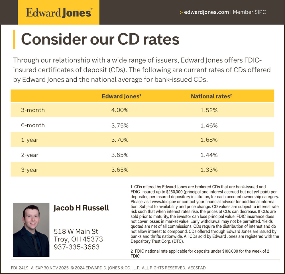 Ads for Jacob H Russell - Edward Jones in Troy, OH
